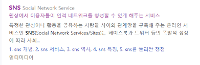 - 온라인상에서 사용자가 텍스트, 이미지, 동영상 등을 올리고 소통할 수 있는 플랫폼