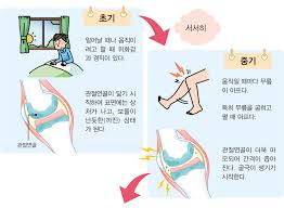 아침에 일어났을 때 무릎이 굳은 듯한 느낌이 들거나, 오래 앉아 있다가 일어날 때 통증이 심해지는 것이 특징이에요.